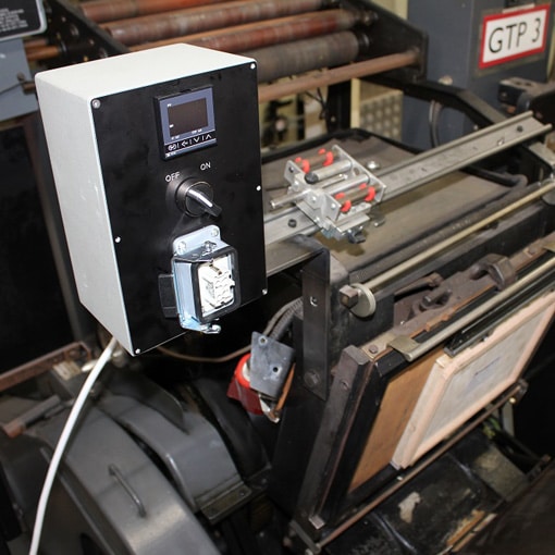 A universal bracket to hold in place heat controller units on foil platens such as Heidelberg T, GTP, Minerva, Kluge, Crosland, Kolbus and other platen/clamshell presses.